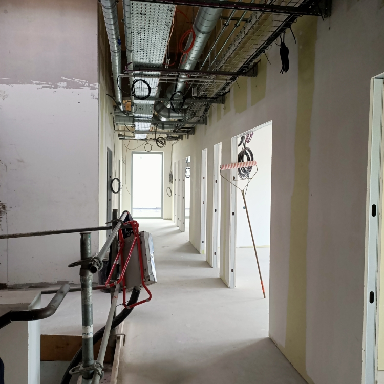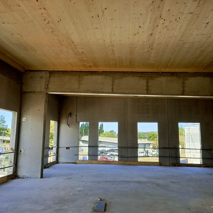 Les détails d’architecture sont simples et contribuent à la lecture de l’ensemble. Les espaces intérieurs des locaux sociaux associent le bois des structures avec les revêtements plus habituels (sols, murs, faux-plafond partiel) pour donner une image différente du lieu de travail.