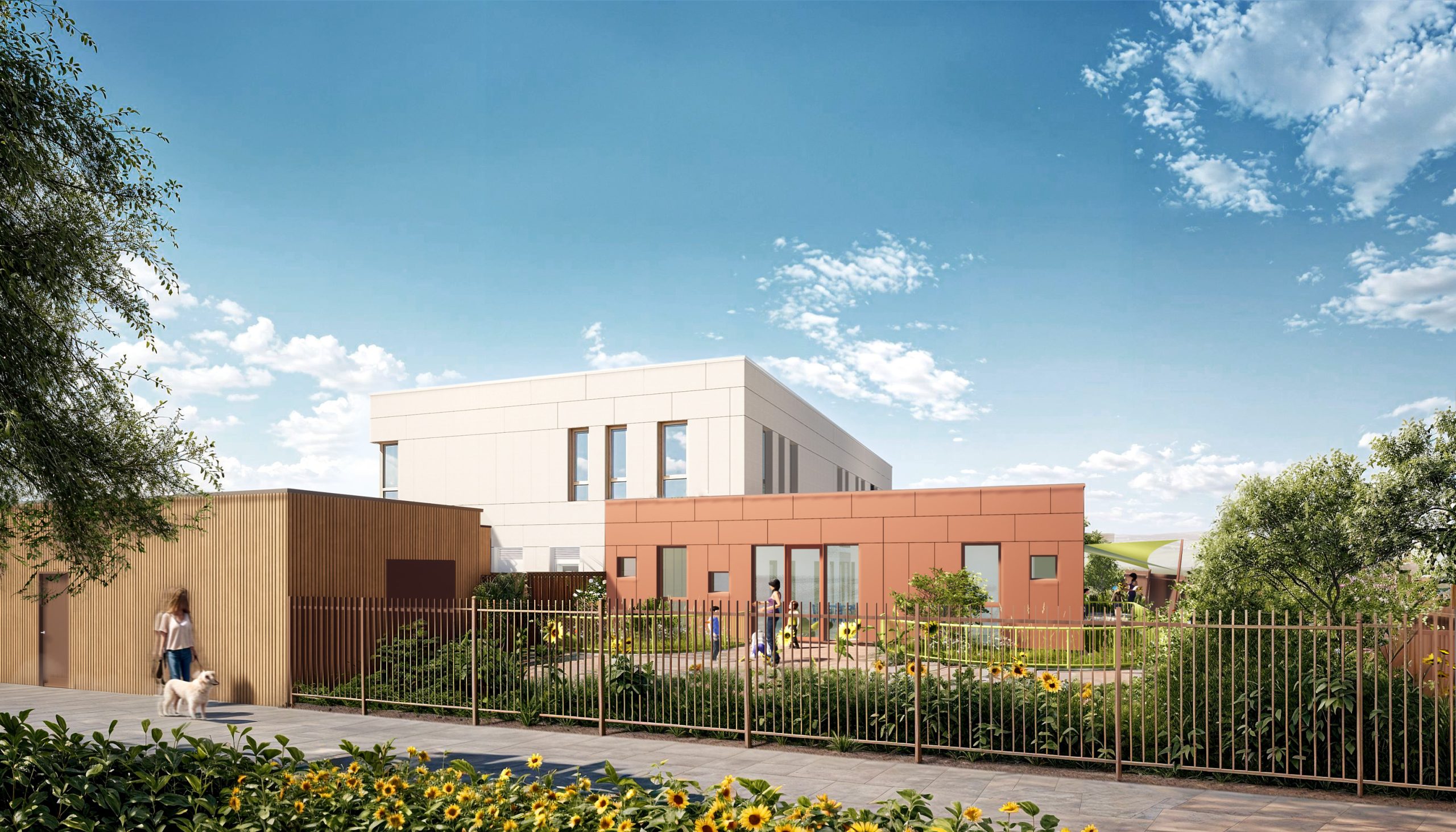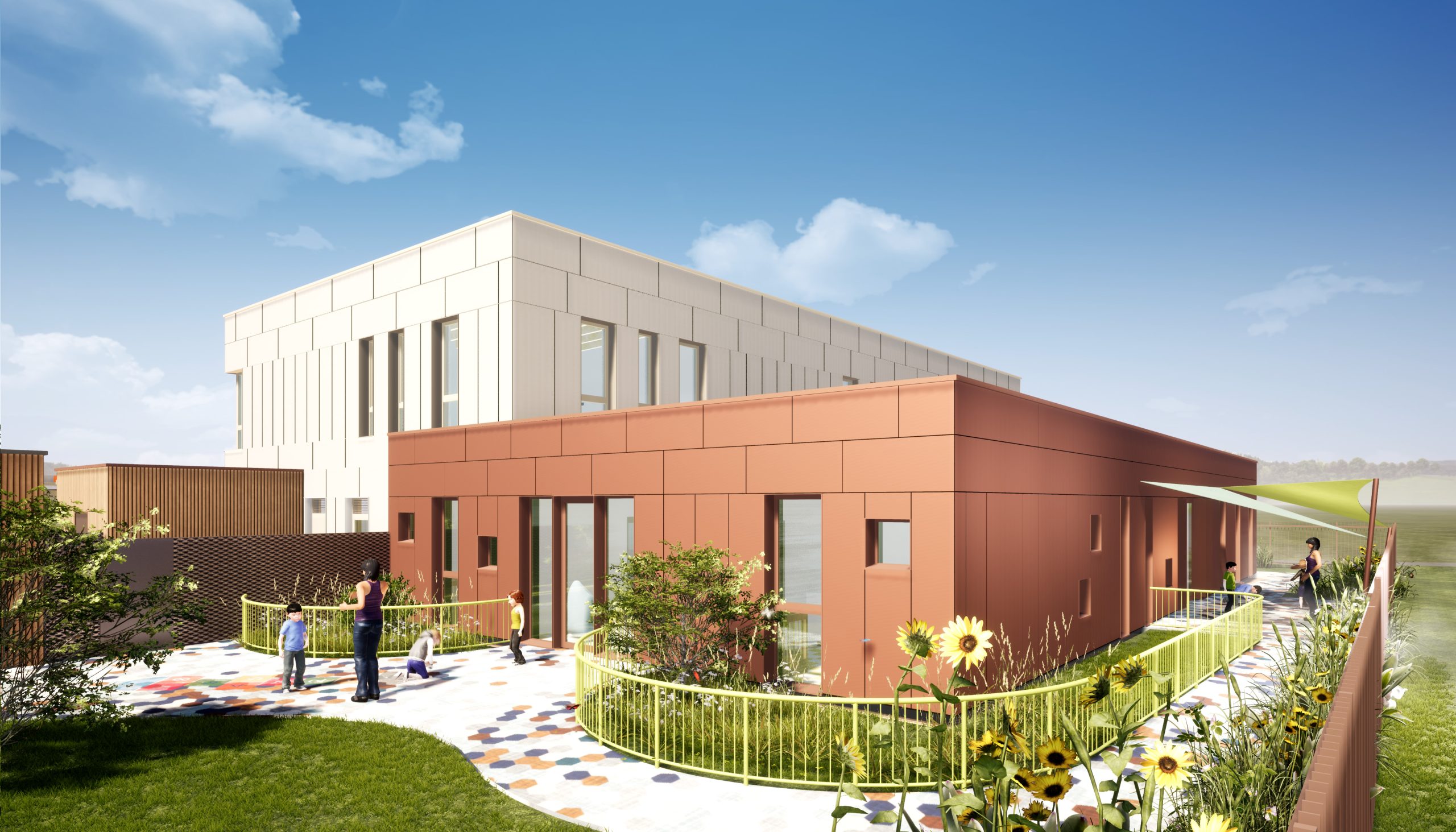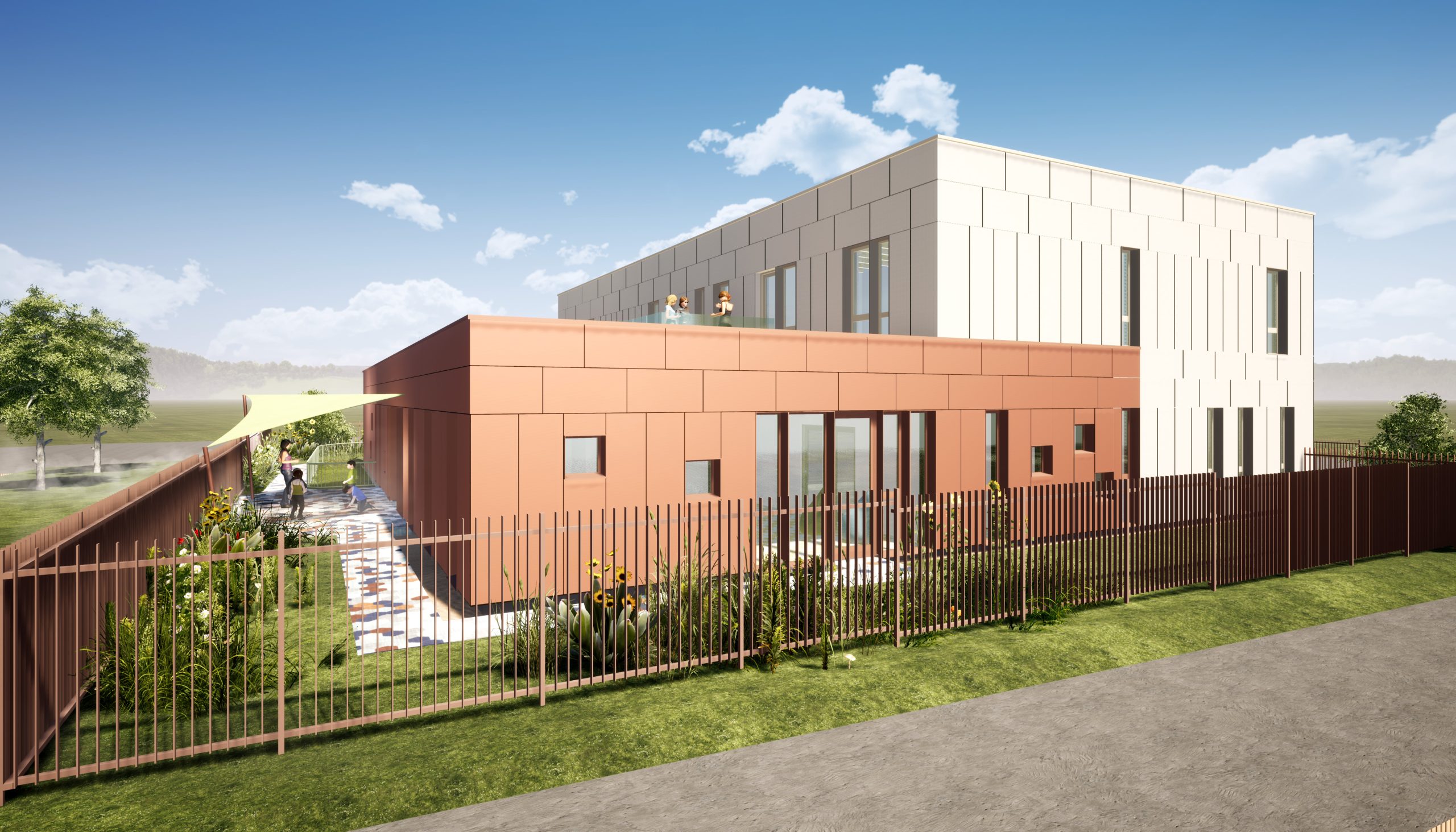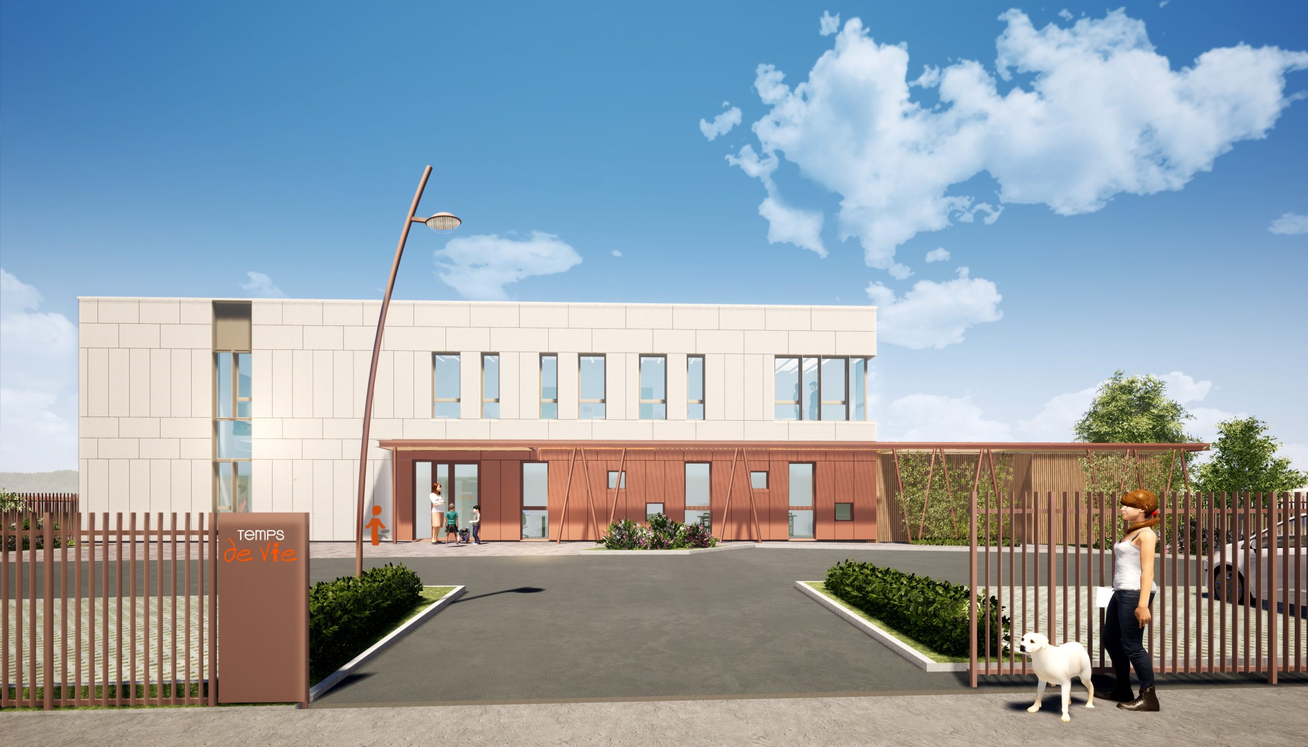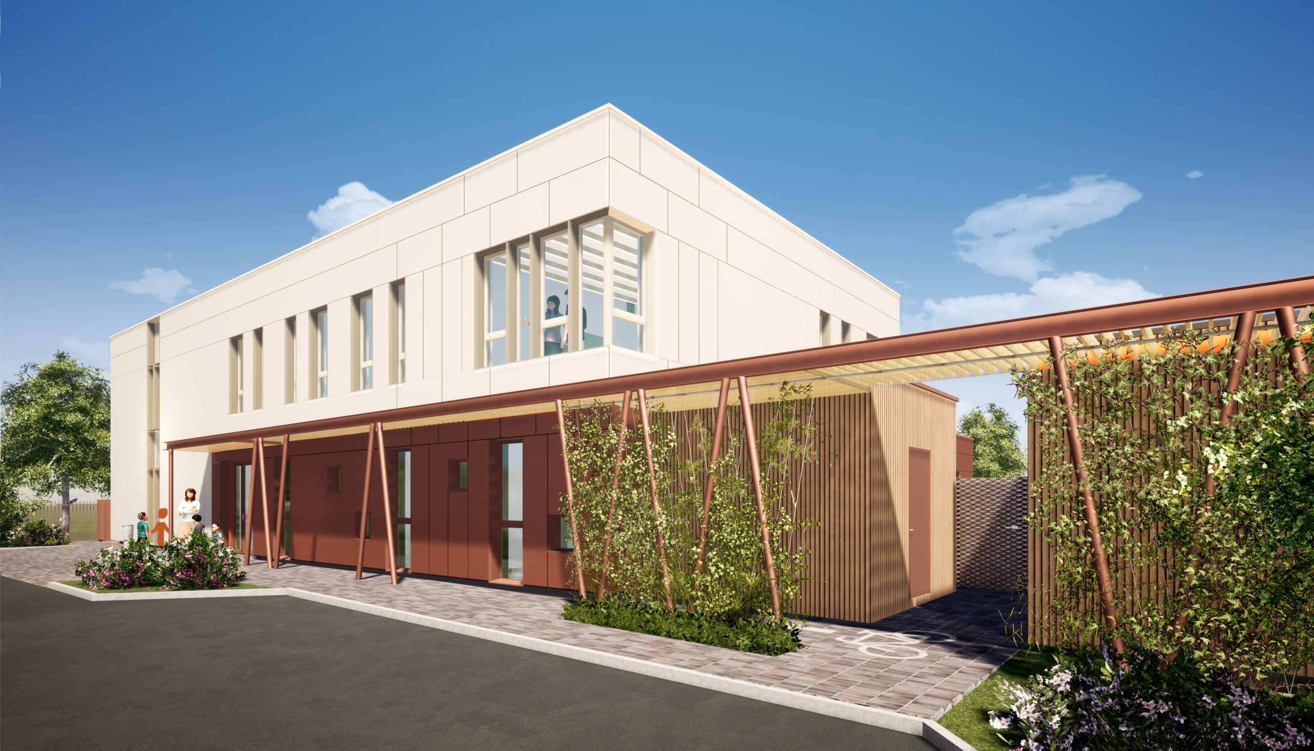 Le bâtiment est organisé de façon à préserver les enfants. Leurs espaces de vie sont orientés à l’arrière côté jardin, et bénéficient d’une triple exposition et d’un espace activités traversant avec éclairage zénithal.