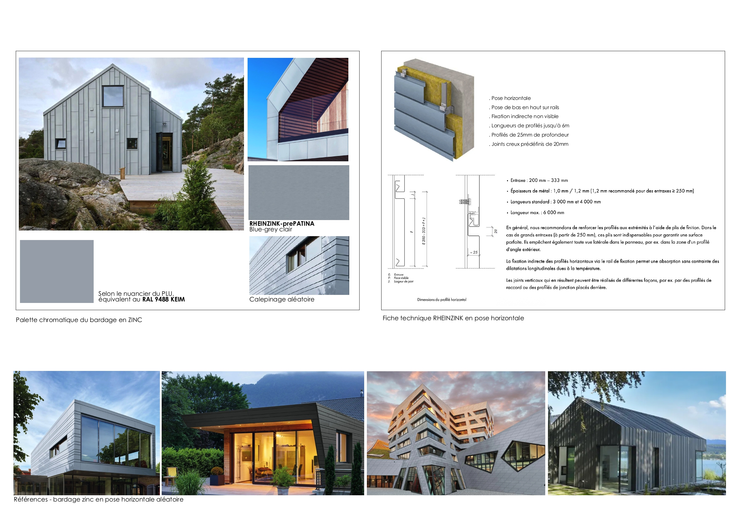 Afin d’améliorer les performances énergétiques, il est prévu une isolation par l’extérieur, revêtu d’un bardage en zinc à joints creux. Le calepinage est finement travaillé avec des hauteurs aléatoires de bardage pour apporter une touche de modernité au bâti. La toiture est quant à elle, végétalisée.